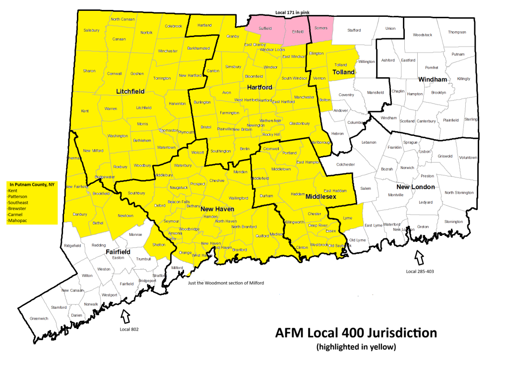 AFM Local 400 is a labor union representing nearly 500 professional musicians throughout the state of Connecticut. We work to ensure that musicians have fair wages and economic security through collective bargaining agreements, wage scales, guaranteed contracts, instrument insurance and a pension fund.